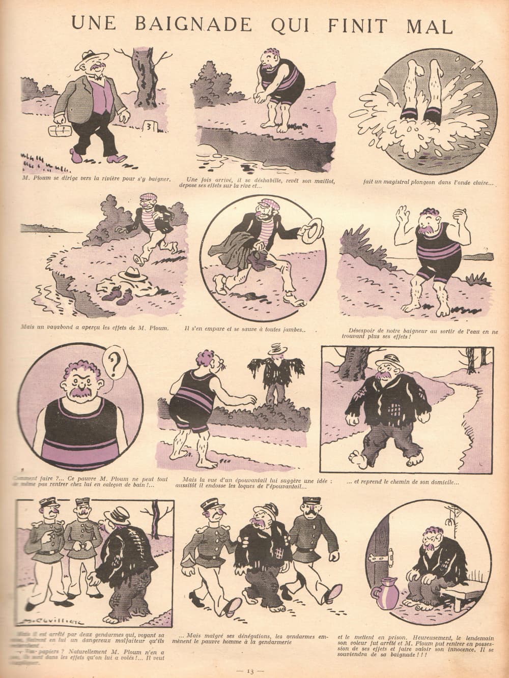 - « Une baignade qui finit mal » dans le n°5 du 11 décembre 1927 (page 13)