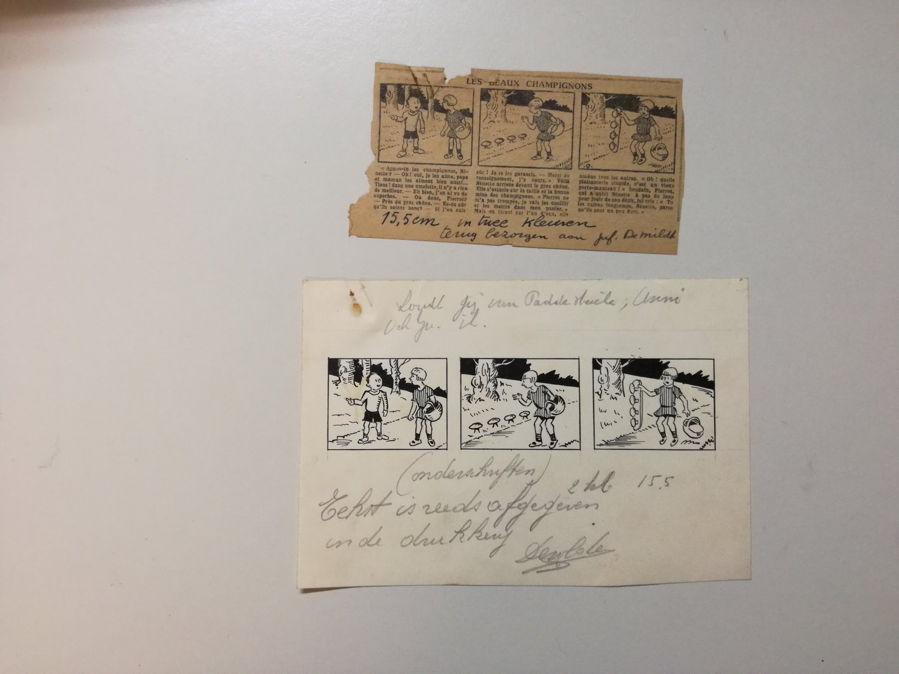 Antoon Mortier est le dessinateur principal du journal Ons Rakkersblad. Des dessins de ce dessinateur ont été mis aux enchères récemment. On trouve le dessin ci-dessus qui est un decalquage d’un dessin de Cuvillier. J’ai vu sur le site de la KBR qu’il en a au moins un autre.