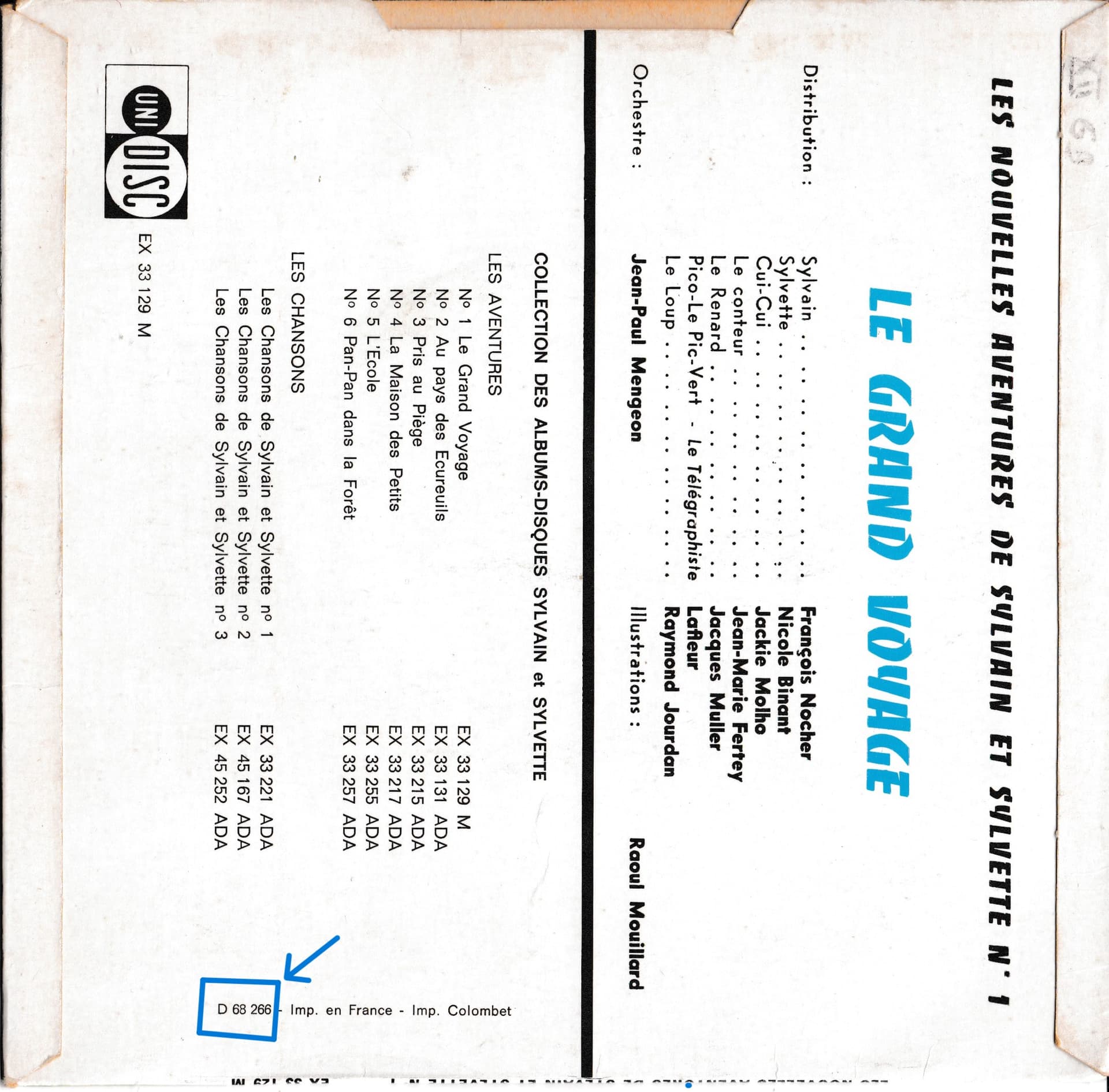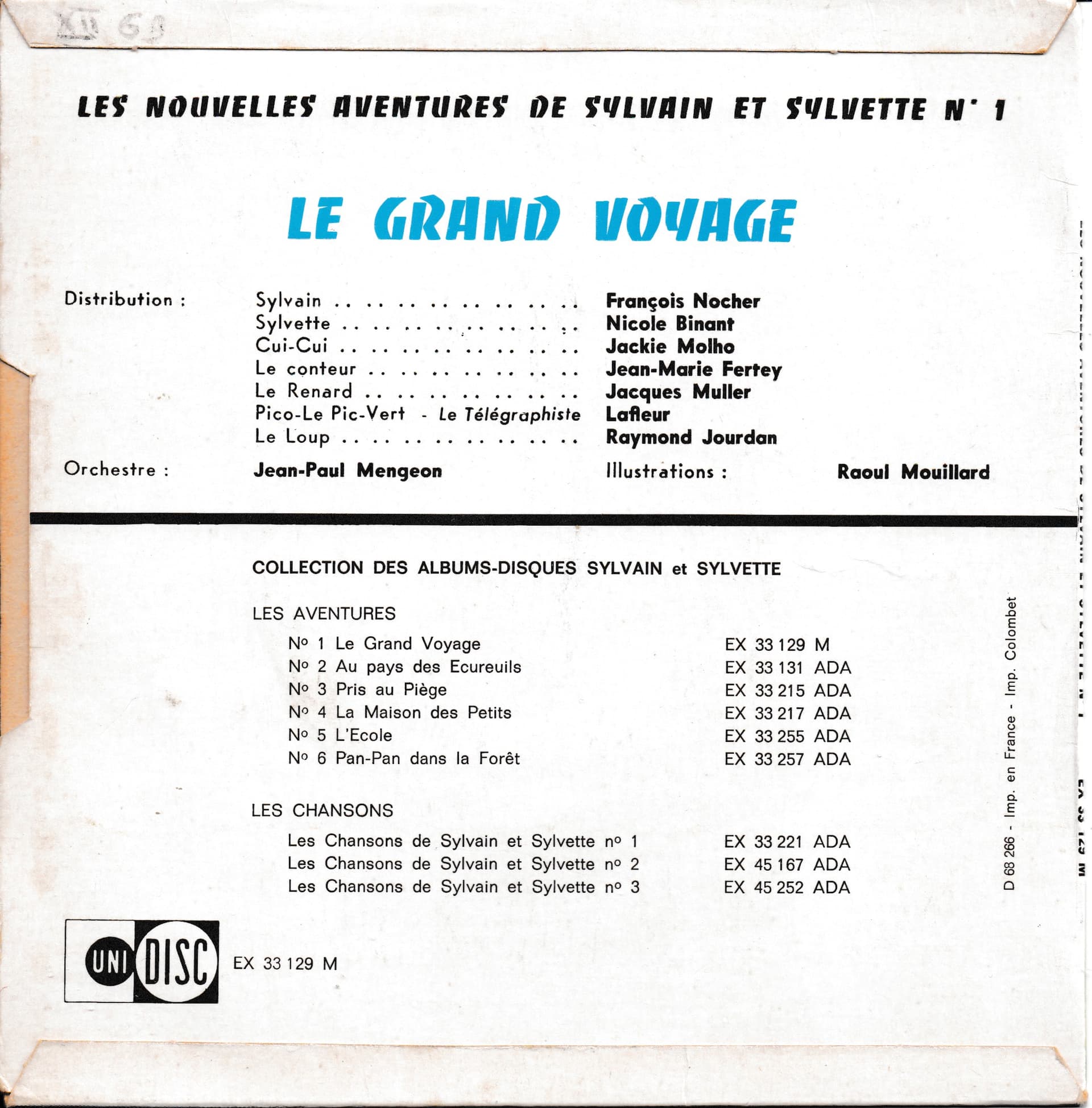 Deux versions du disque « Le grand Voyage » chez Uni-Disc, pochette illustrée par Raoul Mouillard.