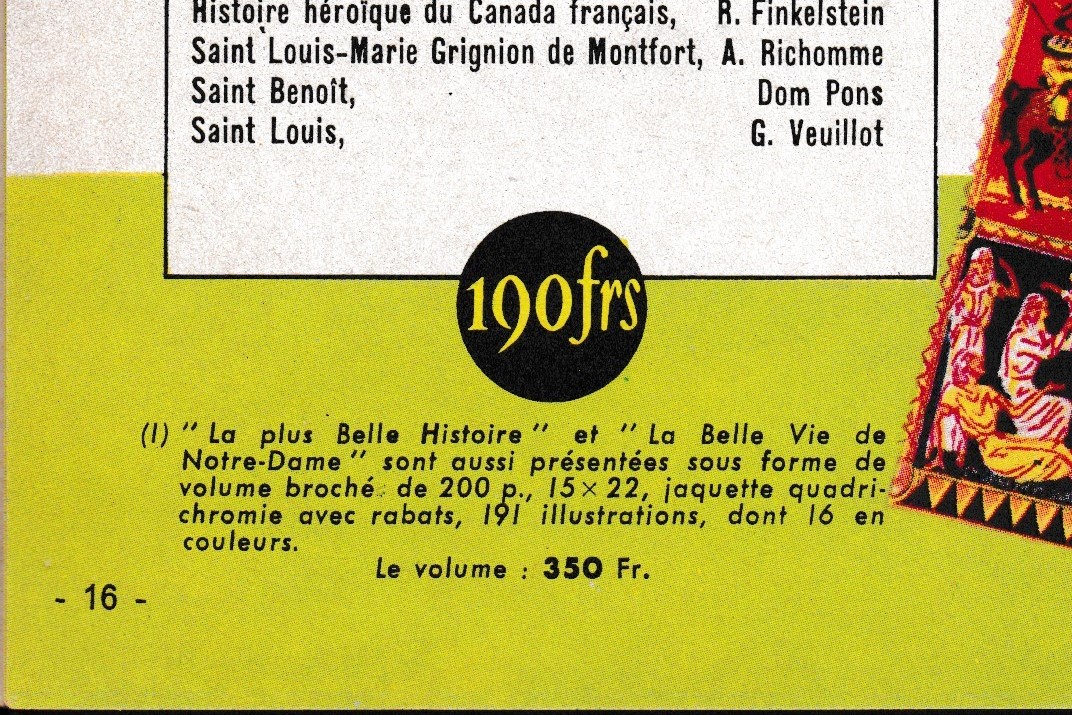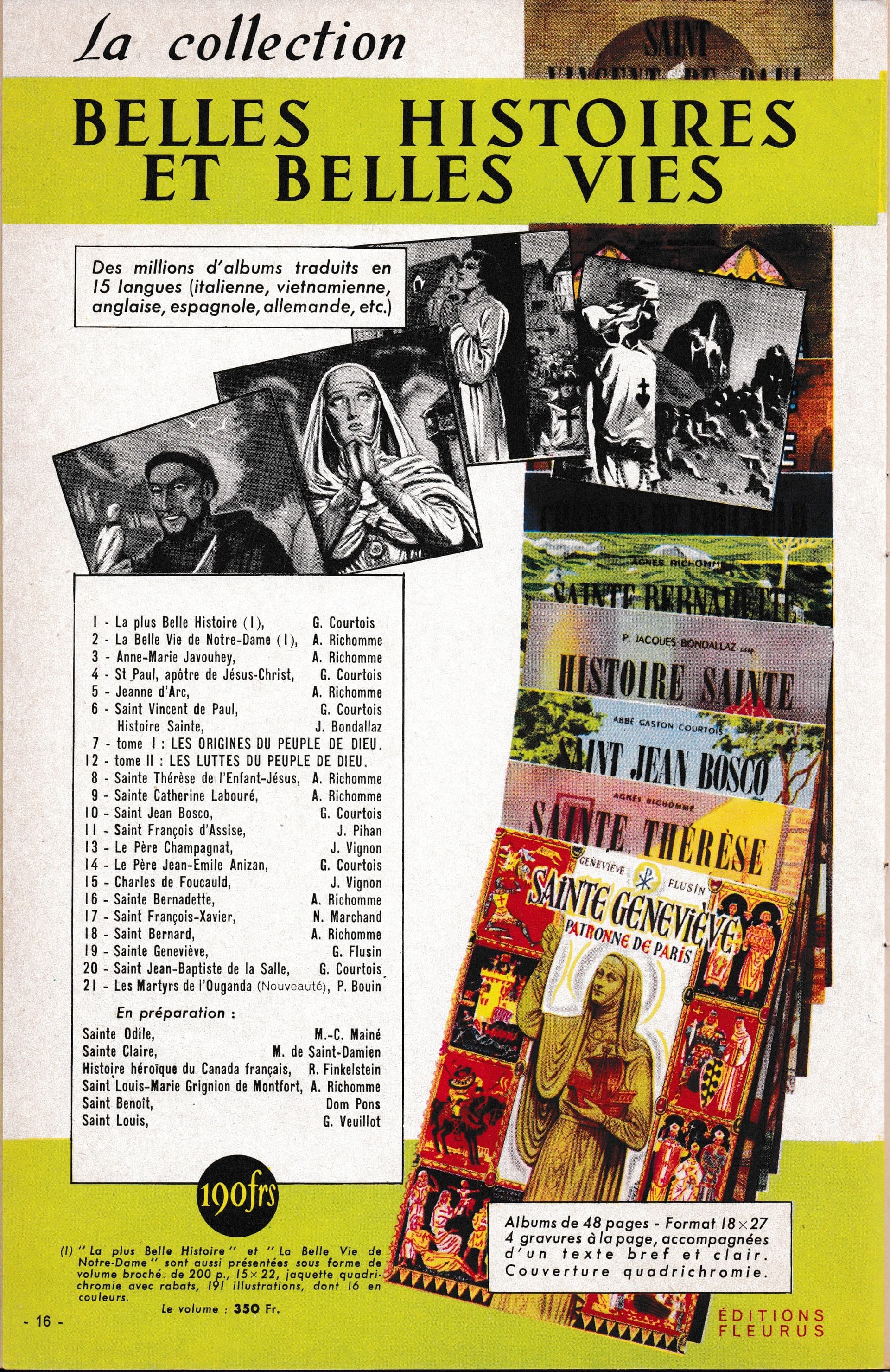 Cette collection débute en 1947 avec « La plus belle Histoire » par l’Abbé Gaston Courtois et illustré par F.A. Breysse. Cette collection se poursuivra durant de nombreuses années jusqu’au dernier titre, le numéro 98 paru en 1972 « Jean-Joseph Allemand » par Raoul Delgrange et illustré par Robert Rigot.