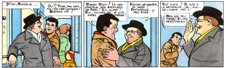 En complément, un dessin de Pierre Brochard représentant Robert Rigot et l’inspecteur Lestaque à la recherche de l’agent 190.